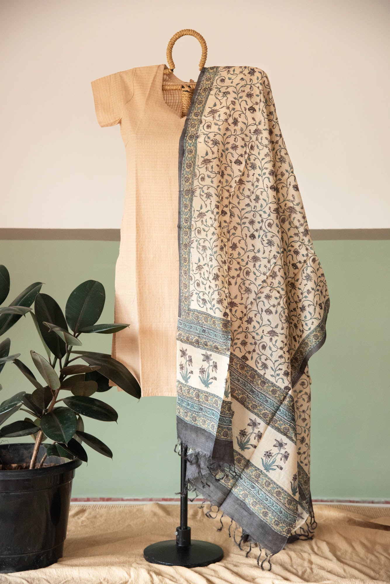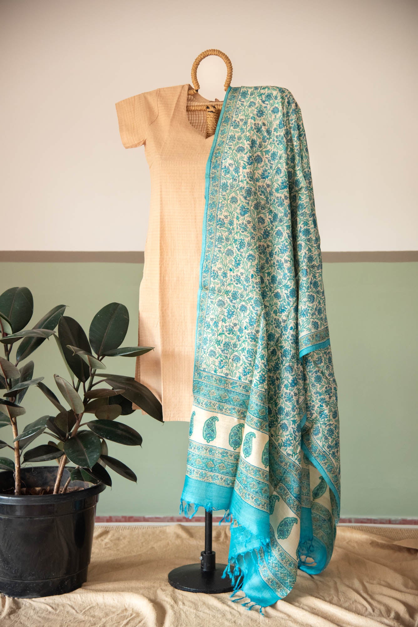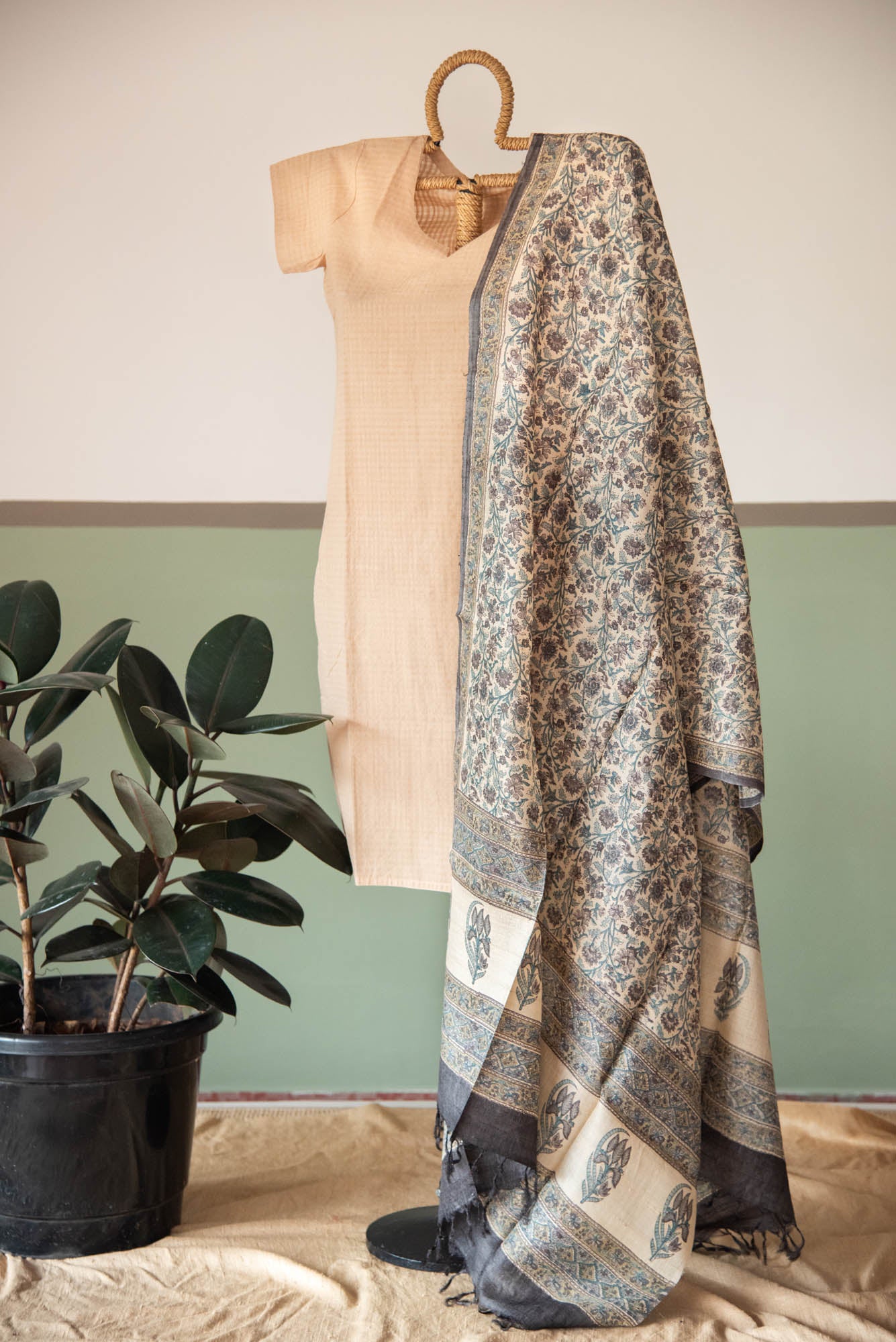 PTD TUSSAR SILK FABRIC &DUPATTA SKD SET