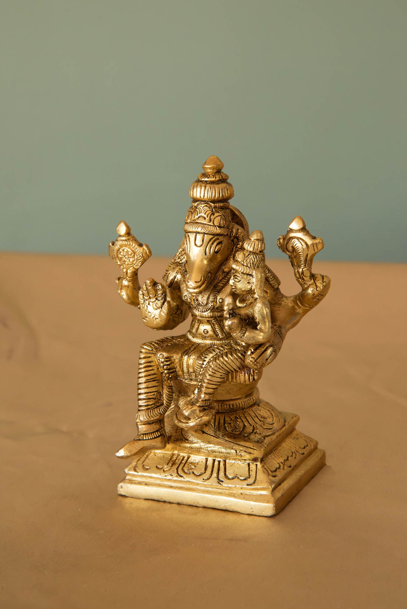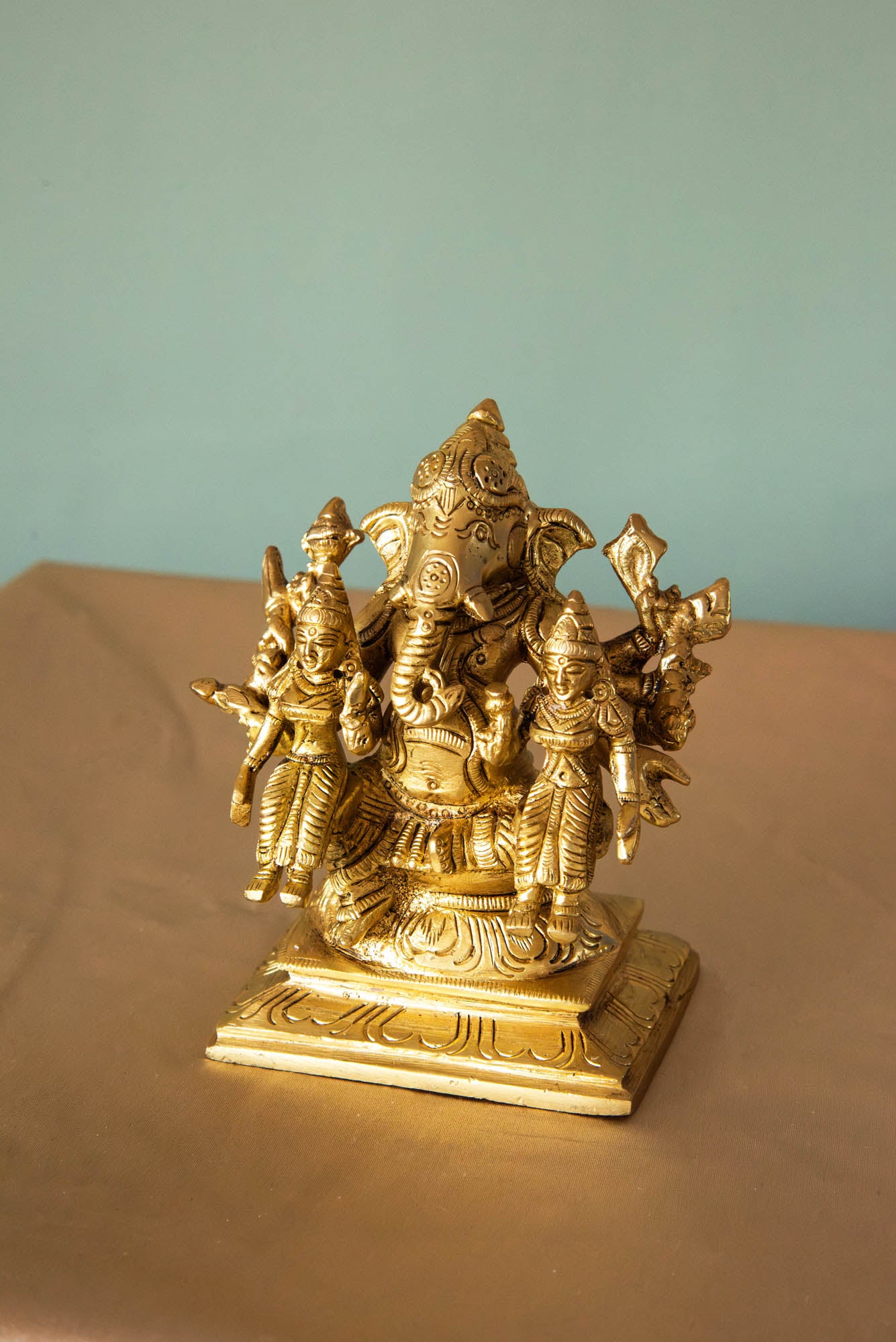 BRASS GANESHA WITH RIDDHI SIDDHI